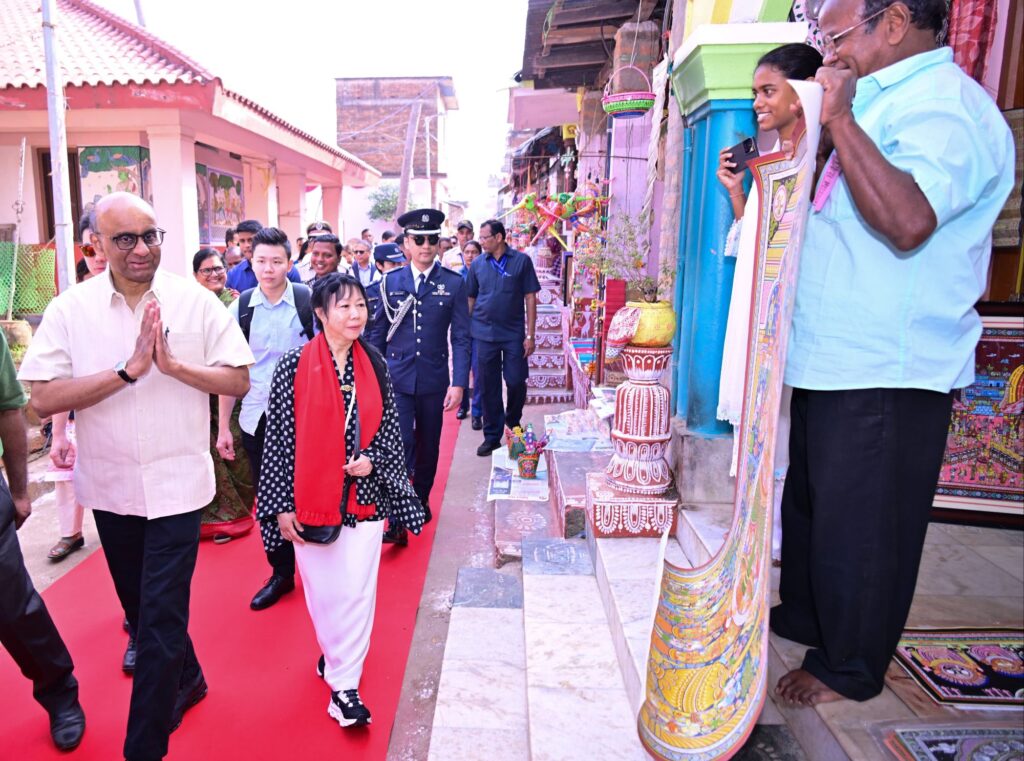 ସିଙ୍ଗାପୁର ଜନରାଜ୍ୟର ମହାମହିମ ରାଷ୍ଟ୍ରପତି ଶ୍ରୀ ଥରମନ୍ ଶନ୍ମୁଗରତ୍ନମ୍ ଏବଂ ତାଙ୍କ ଧର୍ମପତ୍ନୀ ଆଜି ପୁରୀ ଜିଲ୍ଲାର ଐତିହ୍ୟ ଗ୍ରାମ ରଘୁରାଜପୁର ଗସ୍ତରେ ଯାଇ ଓଡ଼ିଶା ପ୍ରସିଦ୍ଧ ପଟ୍ଟଚିତ୍ର ଏବଂ ବିଭିନ୍ନ ଲୋକକଳା ଆଦିକୁ ବୁଲି ଦେଖିଛନ୍ତି। ଲୋକନୃତ୍ୟ ଗୋଟିପୁଅ ଏବଂ ବିଭିନ୍ନ ସାଂସ୍କୃତିକ କାର୍ଯ୍ୟକ୍ରମ ପରିବେଷଣ କରାଯାଇ ମହାମହିମ ରାଷ୍ଟ୍ରପତିଙ୍କୁ ସ୍ୱାଗତ କରାଯାଇଥିଲା। ଏହି ଅବସରରେ ଓଡ଼ିଶାର ଉପମୁଖ୍ୟମନ୍ତ୍ରୀ ଶ୍ରୀମତୀ ପ୍ରଭାତୀ ପରିଡ଼ା, କେନ୍ଦ୍ର ବିଦେଶ ମନ୍ତ୍ରାଳୟର ବରିଷ୍ଠ ଅଧିକାରୀ ଏବଂ ପୁରୀ ଜିଲ୍ଲା ପ୍ରଶାସନର ବରିଷ୍ଠ ଅଧିକାରୀମାନେ ଉପସ୍ଥିତ ଥିଲେ